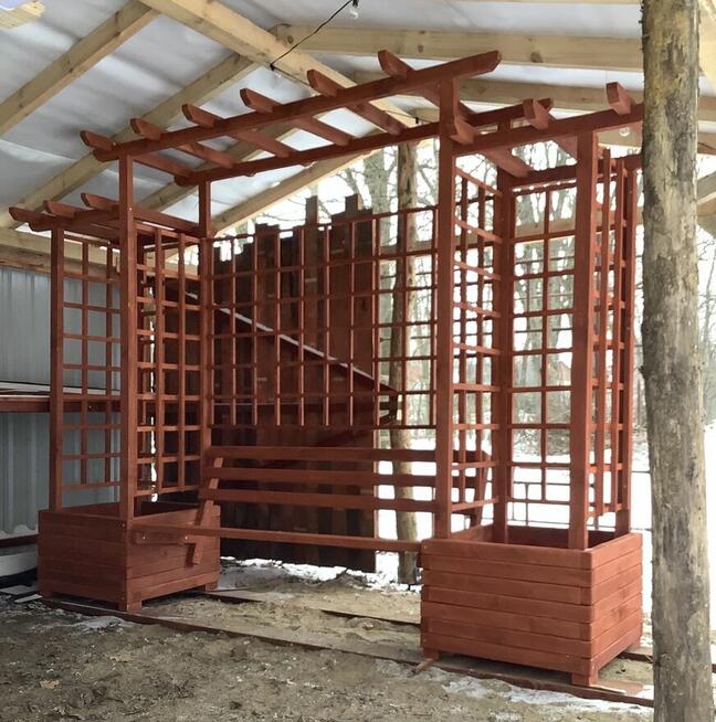 Sprzedam pergolę ogrodową prostą Kolor tik ( możliwość zamówienia w innym kolorze) Wymiary pergoli * wymiary ...